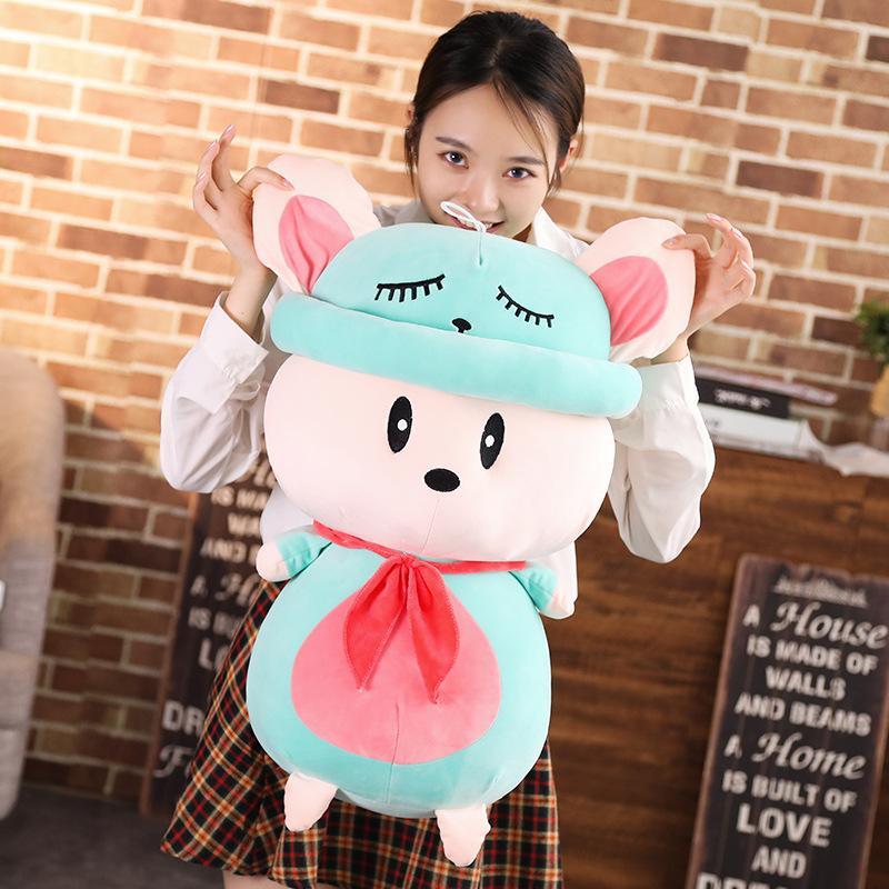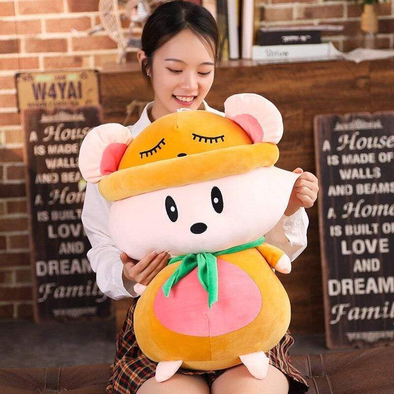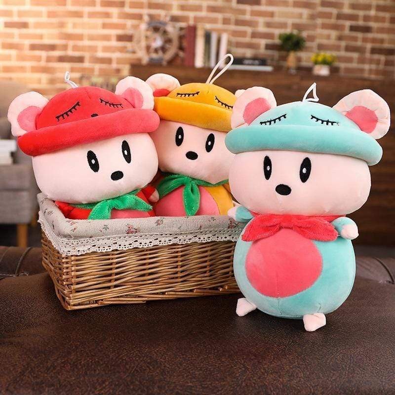 Cette adorable peluche en forme de souris, vêtue d’une tenue unique, apportera une dose d’énergie positive dès le matin. Son chapeau kawaii avec des yeux fermés ajoute un charme irrésistible à ce doudou.