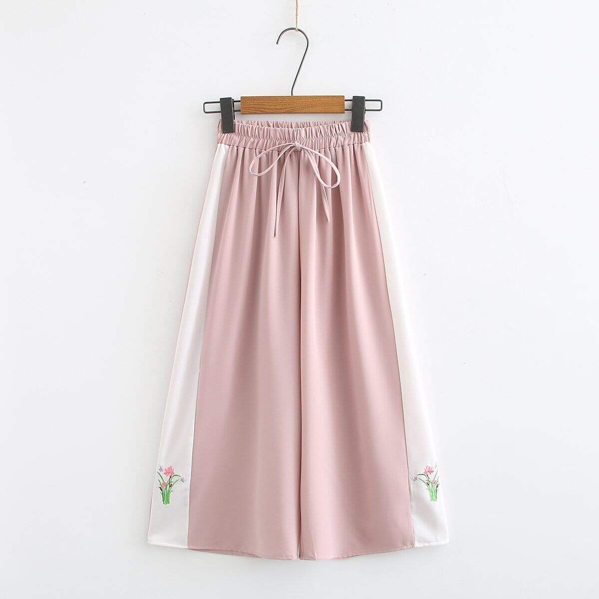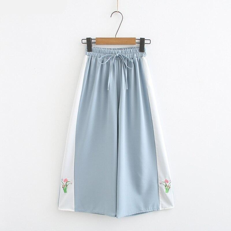 Pantalon de coupe courte au design distinctif avec ses teintes pastel typiques du style kawaii. Ce modèle présente une coupe unique en harem avec des jambes larges bien qu’il soit court.
