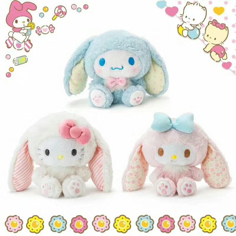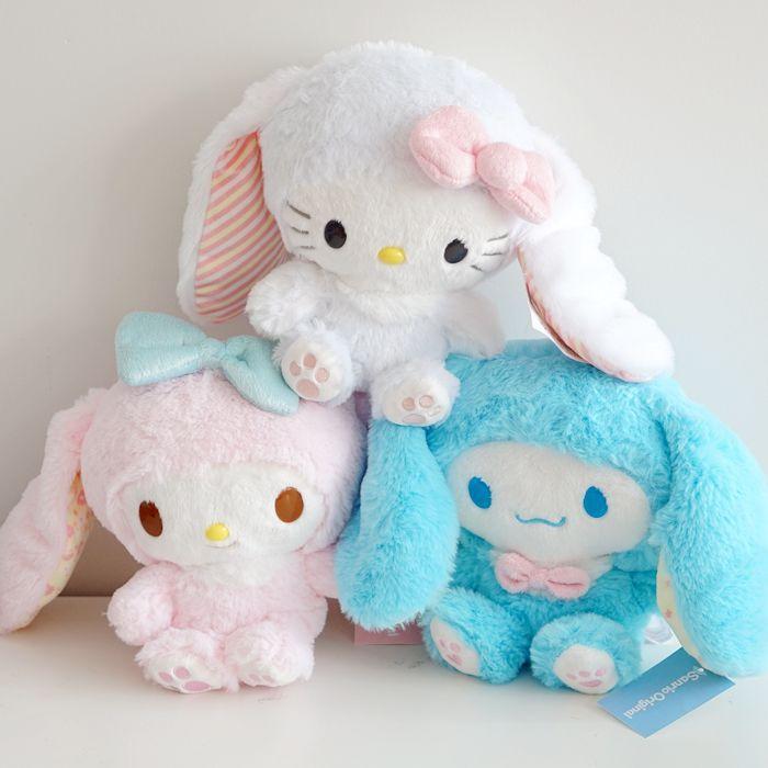 Choisissez parmi ces 3 peluches kawaii de Sanrio en tenue de lapin : My Melody, Hello Kitty et Cinnamoroll