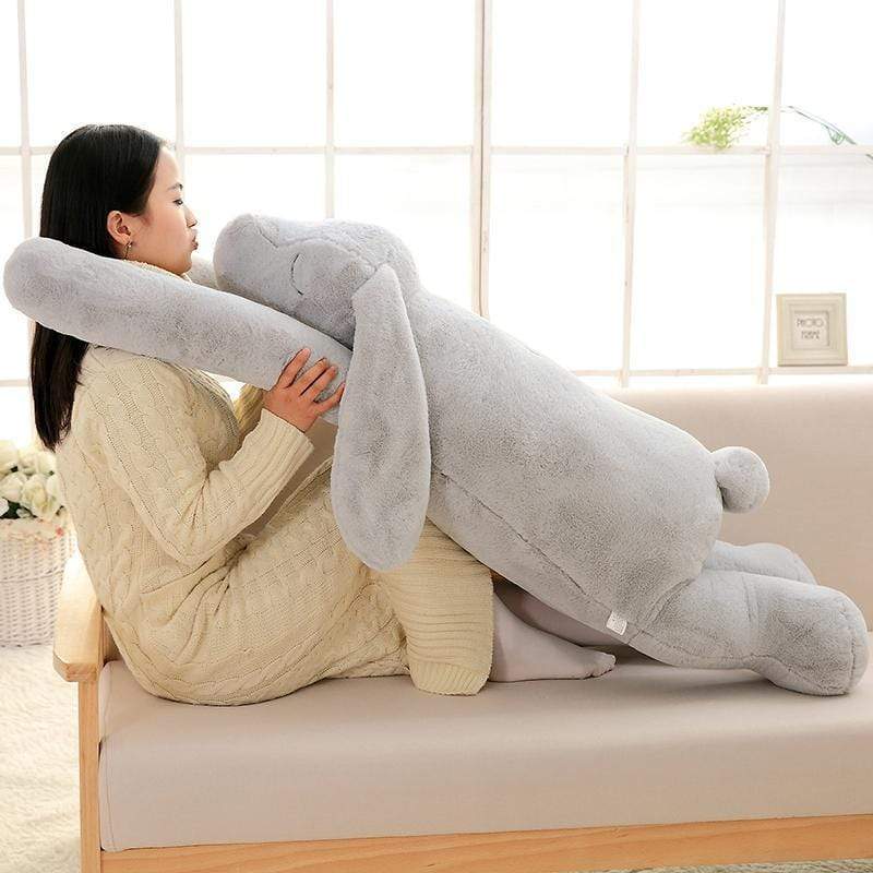 Peluche géante de lapin pour des câlins réconfortants. Presque de votre taille, cette peluche vous procurera une sensation de tendresse.